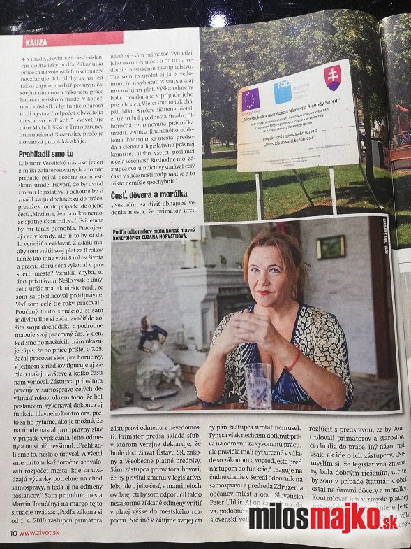 Nezákonne vyplateným odmenám viceprimátorovi Veselickému, sa venuje časopis ŽIVOT